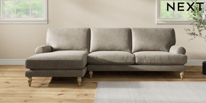 7.2.10 Erin Deep Relaxed Sit Medium Sofa Chaise - Left Hand Cotswold Chenille Mid Mink Brown High Classic Turned - Light | Made Click here to use our website with more accessibility support, for example screen readers