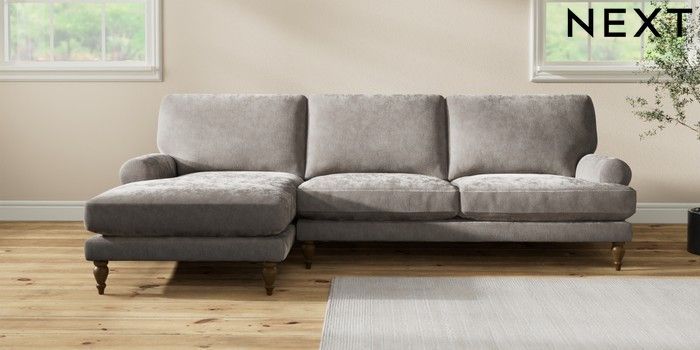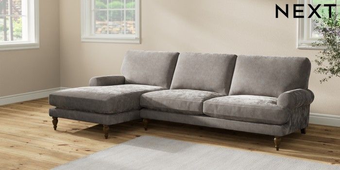 7.2.10 Erin Deep Relaxed Sit Medium Sofa Chaise - Left Hand Distressed Velour French Grey High Classic Turned - Mid | Made Click here to use our website with more accessibility support, for example screen readers