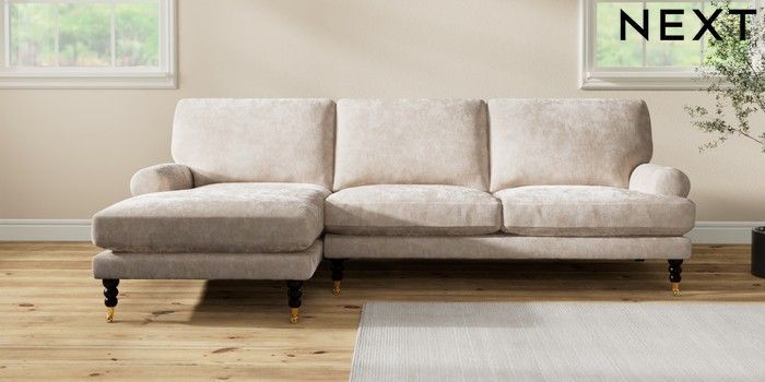 7.2.10 Erin Deep Relaxed Sit Medium Sofa Chaise - Left Hand Distressed Velour Mid Natural High Classic Turned Brass Castor - Dark | Made Click here to use our website with more accessibility support, for example screen readers