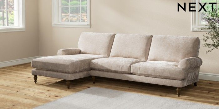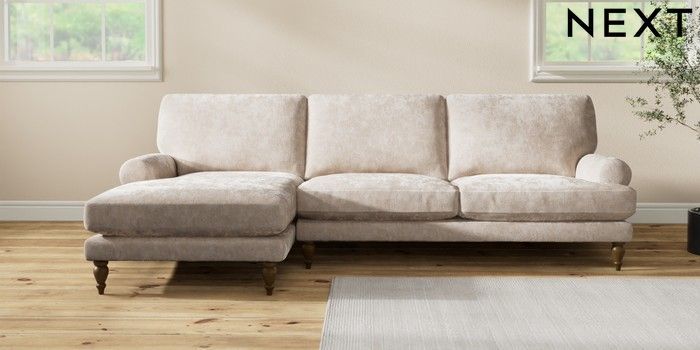 7.2.10 Erin Deep Relaxed Sit Medium Sofa Chaise - Left Hand Distressed Velour Mid Natural High Classic Turned - Mid | Made Click here to use our website with more accessibility support, for example screen readers