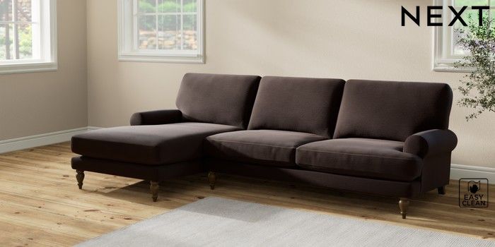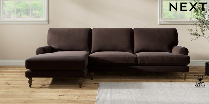 7.2.10 Erin Deep Relaxed Sit Medium Sofa Chaise - Left Hand Fine Chenille Easy Clean Chocolate Brown High Classic Turned - Mid | Made Click here to use our website with more accessibility support, for example screen readers