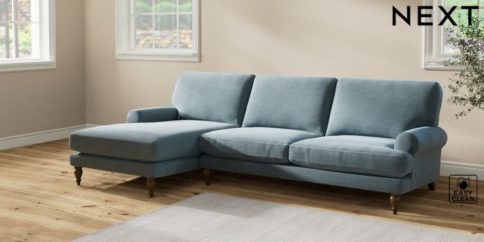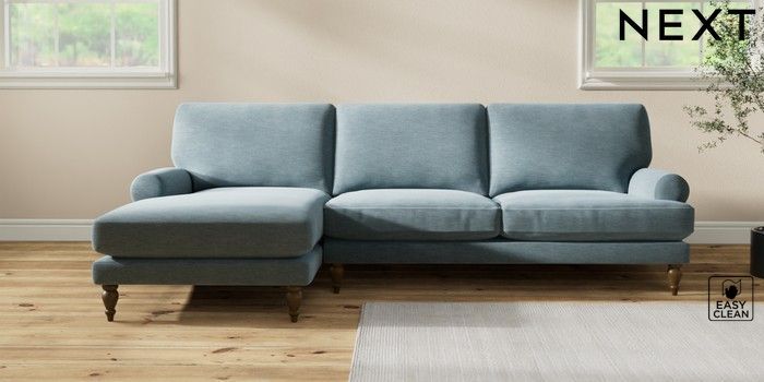 7.2.10 Erin Deep Relaxed Sit Medium Sofa Chaise - Left Hand Fine Chenille Easy Clean Mid Blue High Classic Turned - Mid | Made Click here to use our website with more accessibility support, for example screen readers