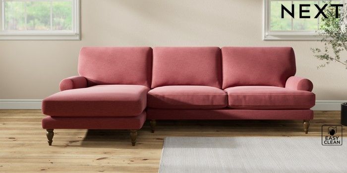 7.2.10 Erin Deep Relaxed Sit Medium Sofa Chaise - Left Hand Fine Chenille Easy Clean Mid Pink High Classic Turned - Mid | Made Click here to use our website with more accessibility support, for example screen readers