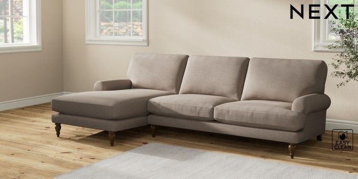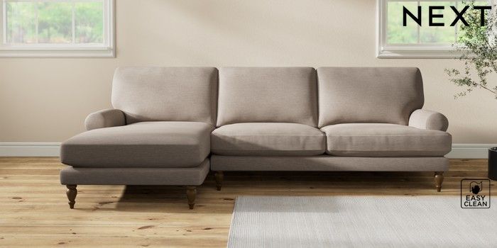 7.2.10 Erin Deep Relaxed Sit Medium Sofa Chaise - Left Hand Fine Chenille Easy Clean Mid Taupe Brown High Classic Turned - Mid | Made Click here to use our website with more accessibility support, for example screen readers
