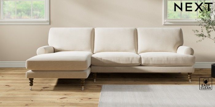 7.2.10 Erin Deep Relaxed Sit Medium Sofa Chaise - Left Hand Fine Chenille Easy Clean Oyster High Classic Turned Chrome Castor - Mid | Made Click here to use our website with more accessibility support, for example screen readers
