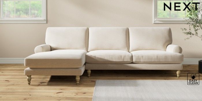 7.2.10 Erin Deep Relaxed Sit Medium Sofa Chaise - Left Hand Fine Chenille Easy Clean Oyster High Classic Turned - Light | Made Click here to use our website with more accessibility support, for example screen readers