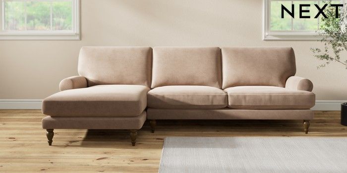 7.2.10 Erin Deep Relaxed Sit Medium Sofa Chaise - Left Hand Luxe Chenille Mid Natural High Classic Turned - Mid | Made Click here to use our website with more accessibility support, for example screen readers