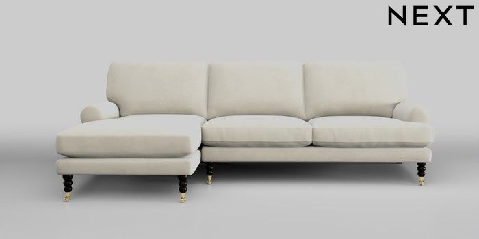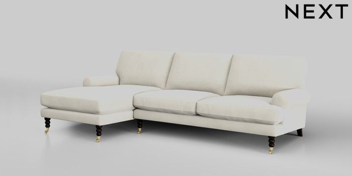 7.2.10 Erin Deep Relaxed Sit Medium Sofa Chaise - Left Hand Luxe Chenille Oyster High Classic Turned Brass Castor - Dark | Made Click here to use our website with more accessibility support, for example screen readers