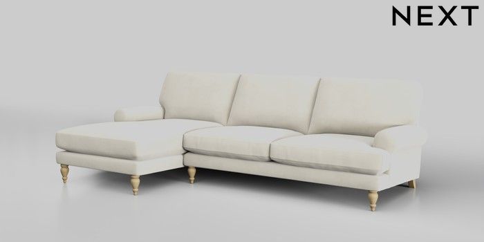 7.2.10 Erin Deep Relaxed Sit Medium Sofa Chaise - Left Hand Luxe Chenille Oyster High Classic Turned - Light | Made Click here to use our website with more accessibility support, for example screen readers