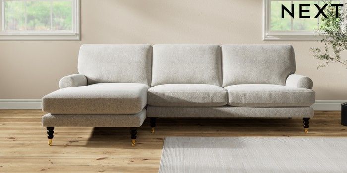 7.2.10 Erin Deep Relaxed Sit Medium Sofa Chaise - Left Hand Multi Weave Light Blue High Classic Turned Brass Castor - Dark | Made Click here to use our website with more accessibility support, for example screen readers