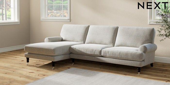 7.2.10 Erin Deep Relaxed Sit Medium Sofa Chaise - Left Hand Multi Weave Light Blue High Classic Turned Chrome Castor - Dark | Made Click here to use our website with more accessibility support, for example screen readers