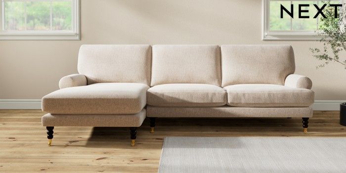 7.2.10 Erin Deep Relaxed Sit Medium Sofa Chaise - Left Hand Multi Weave Mid Natural High Classic Turned Brass Castor - Dark | Made Click here to use our website with more accessibility support, for example screen readers
