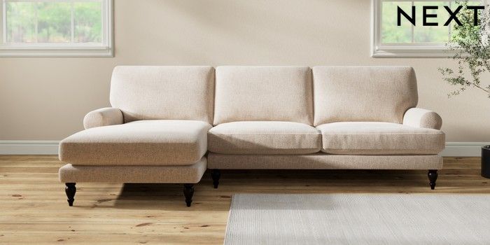 7.2.10 Erin Deep Relaxed Sit Medium Sofa Chaise - Left Hand Multi Weave Mid Natural High Classic Turned - Dark | Made Click here to use our website with more accessibility support, for example screen readers