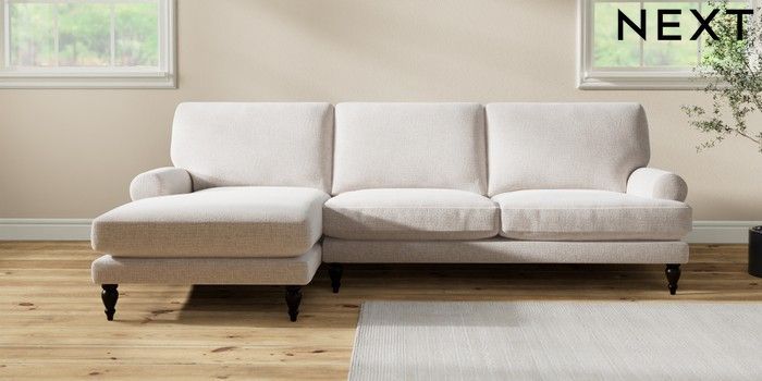 7.2.10 Erin Deep Relaxed Sit Medium Sofa Chaise - Left Hand Multi Weave Oyster High Classic Turned - Dark | Made Click here to use our website with more accessibility support, for example screen readers