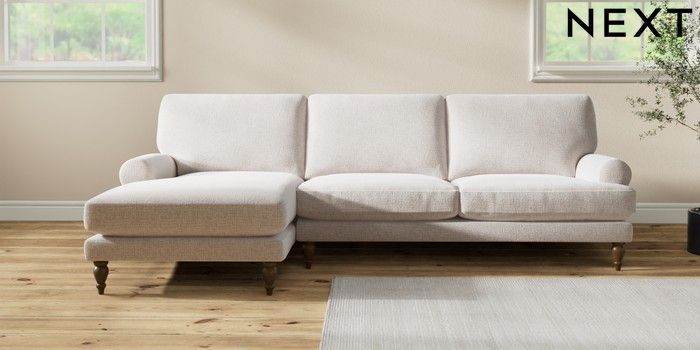 7.2.10 Erin Deep Relaxed Sit Medium Sofa Chaise - Left Hand Multi Weave Oyster High Classic Turned - Mid | Made Click here to use our website with more accessibility support, for example screen readers