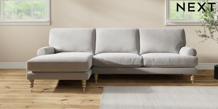 7.2.10 Erin Deep Relaxed Sit Medium Sofa Chaise - Left Hand Natural Mix Light Grey High Classic Turned Chrome Castor - Light | Made Click here to use our website with more accessibility support, for example screen readers