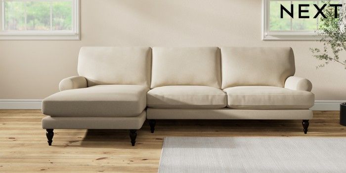 7.2.10 Erin Deep Relaxed Sit Medium Sofa Chaise - Left Hand Natural Mix Light Natural High Classic Turned - Dark | Made Click here to use our website with more accessibility support, for example screen readers
