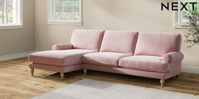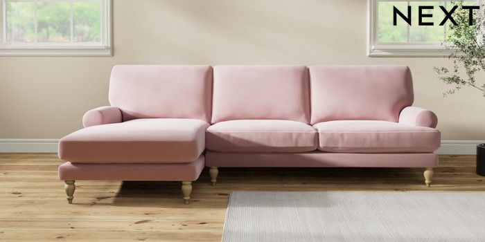 7.2.10 Erin Deep Relaxed Sit Medium Sofa Chaise - Left Hand Natural Mix Light Rose Pink High Classic Turned - Light | Made Click here to use our website with more accessibility support, for example screen readers
