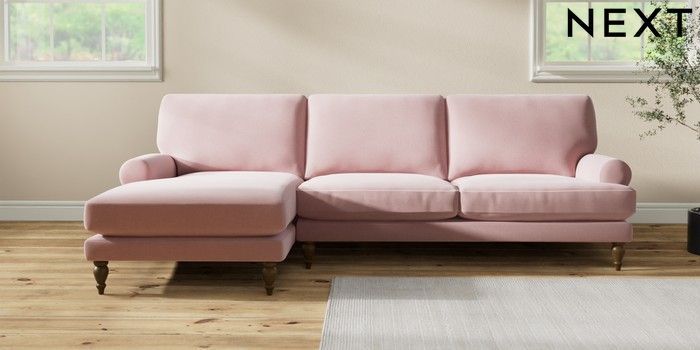 7.2.10 Erin Deep Relaxed Sit Medium Sofa Chaise - Left Hand Natural Mix Light Rose Pink High Classic Turned - Mid | Made Click here to use our website with more accessibility support, for example screen readers
