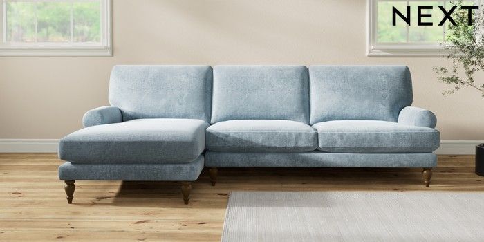 7.2.10 Erin Deep Relaxed Sit Medium Sofa Chaise - Left Hand Plush Chenille Light Blue High Classic Turned - Mid | Made Click here to use our website with more accessibility support, for example screen readers