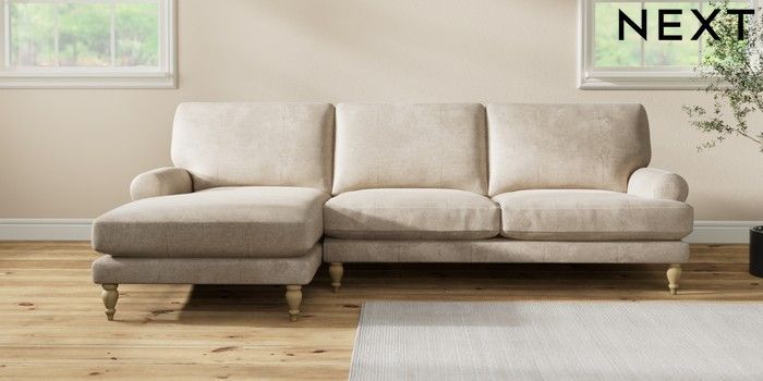 7.2.10 Erin Deep Relaxed Sit Medium Sofa Chaise - Left Hand Plush Chenille Light Natural High Classic Turned - Light | Made Click here to use our website with more accessibility support, for example screen readers