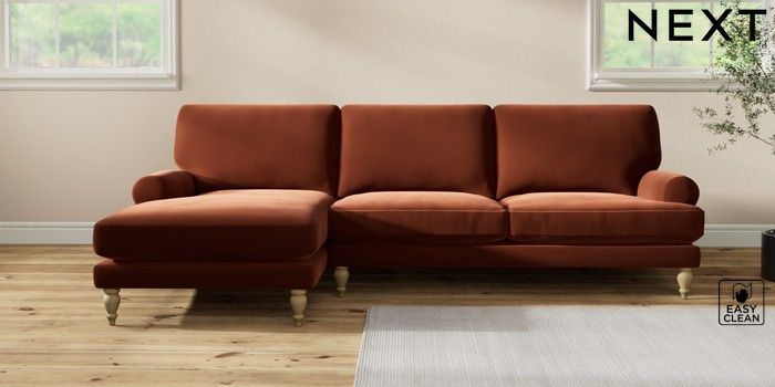 7.2.10 Erin Deep Relaxed Sit Medium Sofa Chaise - Left Hand Plush Velvet Easy Clean Ginger Orange High Classic Turned - Light | Made Click here to use our website with more accessibility support, for example screen readers