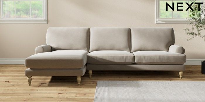 7.2.10 Erin Deep Relaxed Sit Medium Sofa Chaise - Left Hand Ripple Chenille Light Natural High Classic Turned - Light | Made Click here to use our website with more accessibility support, for example screen readers
