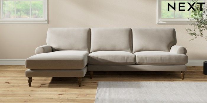7.2.10 Erin Deep Relaxed Sit Medium Sofa Chaise - Left Hand Ripple Chenille Light Natural High Classic Turned - Mid | Made Click here to use our website with more accessibility support, for example screen readers