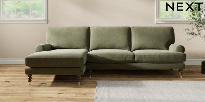 7.2.10 Erin Deep Relaxed Sit Medium Sofa Chaise - Left Hand Ripple Chenille Mid Moss Green High Classic Turned Chrome Castor - Mid | Made Click here to use our website with more accessibility support, for example screen readers