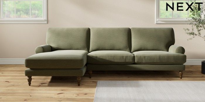 7.2.10 Erin Deep Relaxed Sit Medium Sofa Chaise - Left Hand Ripple Chenille Mid Moss Green High Classic Turned - Mid | Made Click here to use our website with more accessibility support, for example screen readers