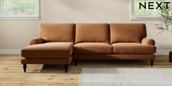 7.2.10 Erin Deep Relaxed Sit Medium Sofa Chaise - Left Hand Ripple Chenille Mid Rust Brown High Classic Turned - Dark | Made Click here to use our website with more accessibility support, for example screen readers