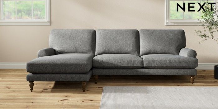 7.2.10 Erin Deep Relaxed Sit Medium Sofa Chaise - Left Hand Tweedy Chenille Dark Grey High Classic Turned - Mid | Made Click here to use our website with more accessibility support, for example screen readers