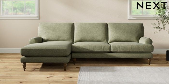 7.2.10 Erin Deep Relaxed Sit Medium Sofa Chaise - Left Hand Tweedy Chenille Mid Moss Green High Classic Turned - Mid | Made Click here to use our website with more accessibility support, for example screen readers