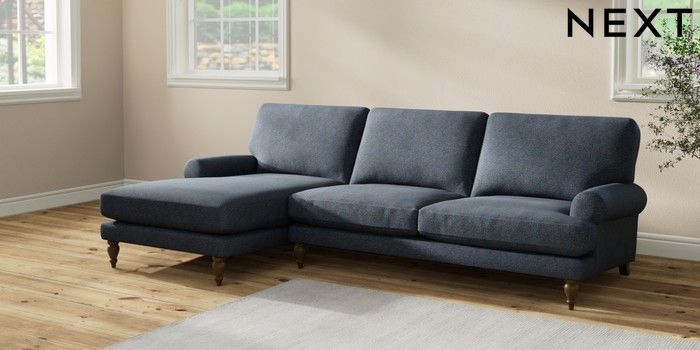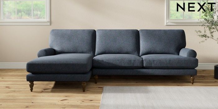 7.2.10 Erin Deep Relaxed Sit Medium Sofa Chaise - Left Hand Tweedy Chenille Navy Blue High Classic Turned - Mid | Made Click here to use our website with more accessibility support, for example screen readers