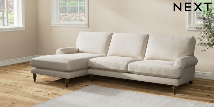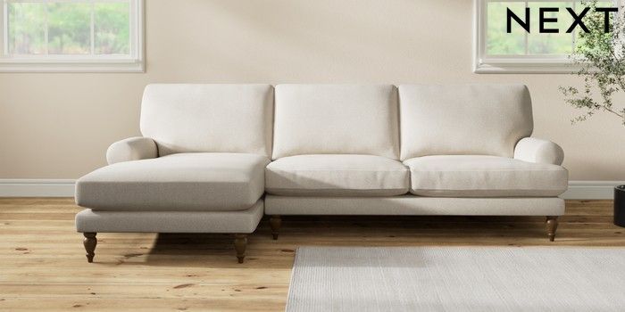 7.2.10 Erin Deep Relaxed Sit Medium Sofa Chaise - Left Hand Tweedy Chenille Oyster High Classic Turned - Mid | Made Click here to use our website with more accessibility support, for example screen readers