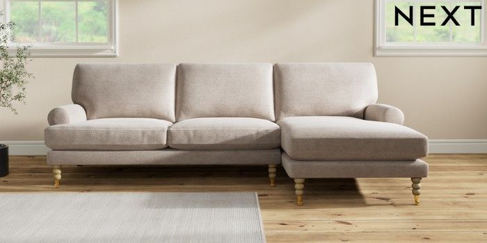 7.2.10 Erin Deep Relaxed Sit Medium Sofa Chaise - Right Hand Boucle Chenille Light Natural High Classic Turned Brass Castor - Light | Made Click here to use our website with more accessibility support, for example screen readers