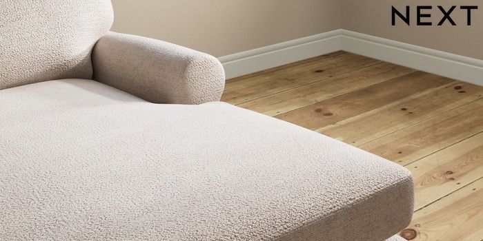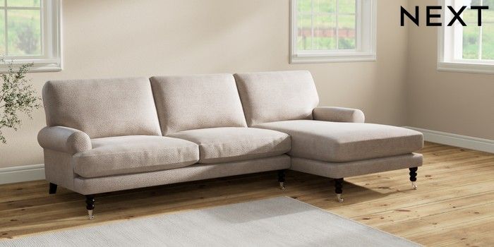 7.2.10 Erin Deep Relaxed Sit Medium Sofa Chaise - Right Hand Boucle Chenille Light Natural High Classic Turned Chrome Castor - Dark | Made Click here to use our website with more accessibility support, for example screen readers