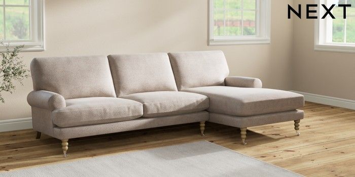 7.2.10 Erin Deep Relaxed Sit Medium Sofa Chaise - Right Hand Boucle Chenille Light Natural High Classic Turned Chrome Castor - Light | Made Click here to use our website with more accessibility support, for example screen readers