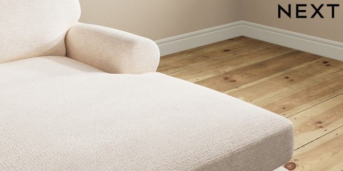 7.2.10 Erin Deep Relaxed Sit Medium Sofa Chaise - Right Hand Boucle Chenille Oyster High Classic Turned Brass Castor - Dark | Made Click here to use our website with more accessibility support, for example screen readers