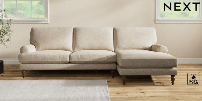 7.2.10 Erin Deep Relaxed Sit Medium Sofa Chaise - Right Hand Boucle Weave Easy Clean Dark Natural High Classic Turned - Mid | Made Click here to use our website with more accessibility support, for example screen readers