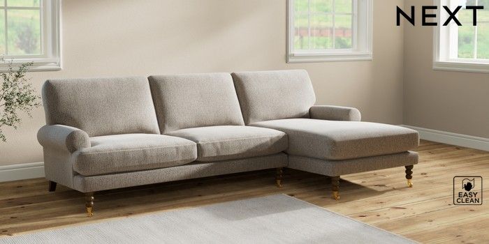 7.2.10 Erin Deep Relaxed Sit Medium Sofa Chaise - Right Hand Chunky Boucle Easy Clean Dove High Classic Turned Brass Castor - Mid | Made Click here to use our website with more accessibility support, for example screen readers