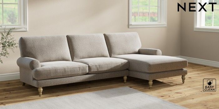 7.2.10 Erin Deep Relaxed Sit Medium Sofa Chaise - Right Hand Chunky Boucle Easy Clean Dove High Classic Turned - Light | Made Click here to use our website with more accessibility support, for example screen readers