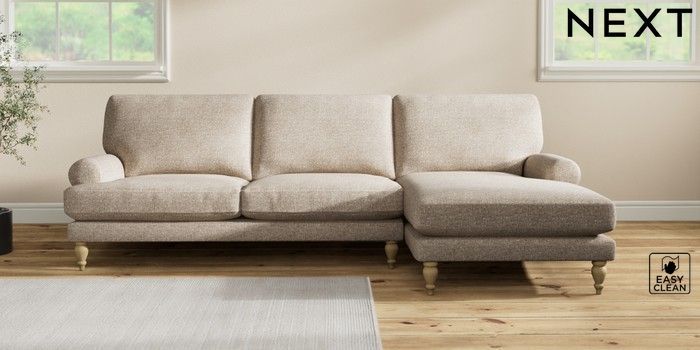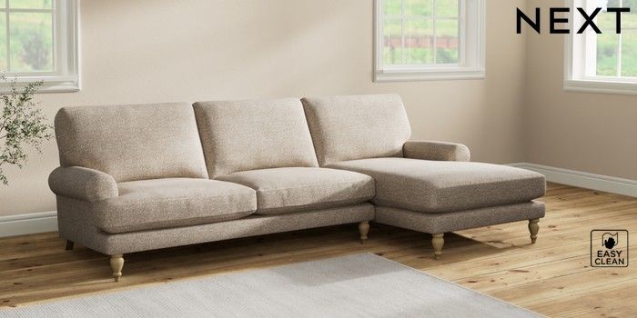7.2.10 Erin Deep Relaxed Sit Medium Sofa Chaise - Right Hand Chunky Boucle Easy Clean Mid Natural High Classic Turned - Light | Made Click here to use our website with more accessibility support, for example screen readers