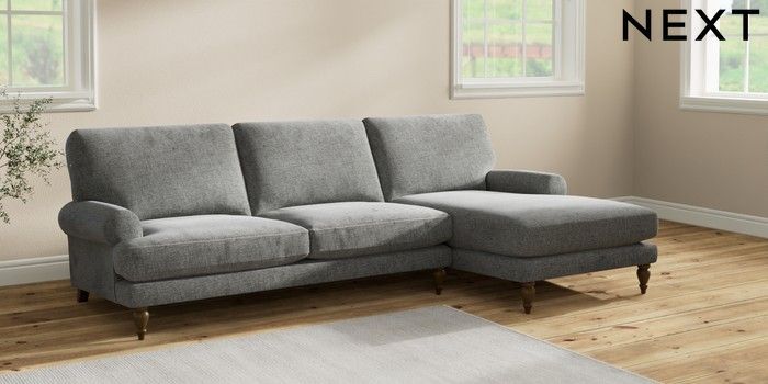 7.2.10 Erin Deep Relaxed Sit Medium Sofa Chaise - Right Hand Chunky Chenille Dark Grey High Classic Turned - Mid | Made Click here to use our website with more accessibility support, for example screen readers
