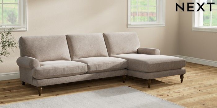 7.2.10 Erin Deep Relaxed Sit Medium Sofa Chaise - Right Hand Chunky Chenille Light Dove High Classic Turned - Mid | Made Click here to use our website with more accessibility support, for example screen readers