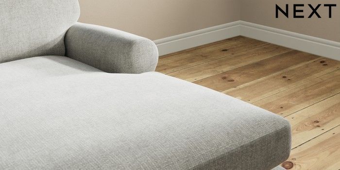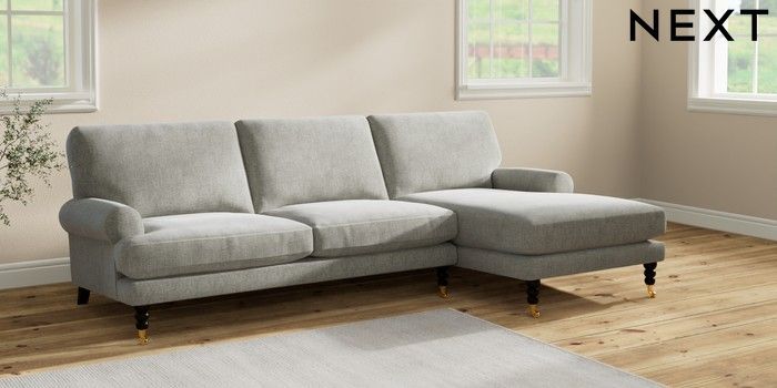 7.2.10 Erin Deep Relaxed Sit Medium Sofa Chaise - Right Hand Chunky Chenille Light Grey High Classic Turned Brass Castor - Dark | Made Click here to use our website with more accessibility support, for example screen readers