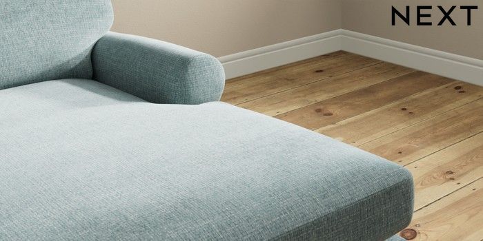 7.2.10 Erin Deep Relaxed Sit Medium Sofa Chaise - Right Hand Chunky Chenille Light Teal Green High Classic Turned Chrome Castor - Mid | Made Click here to use our website with more accessibility support, for example screen readers