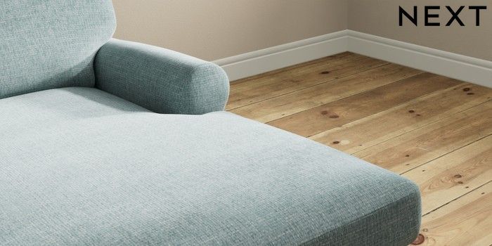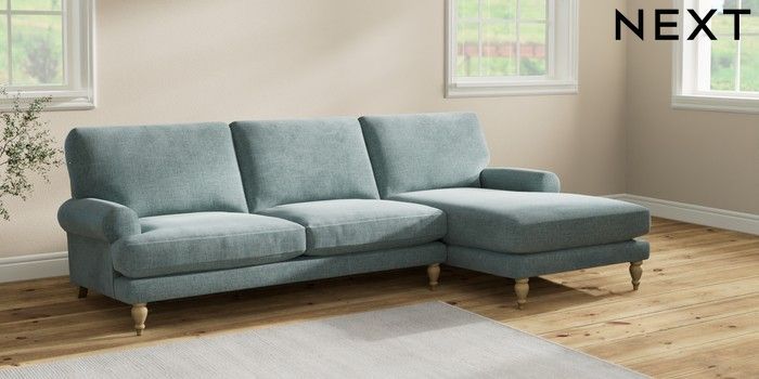 7.2.10 Erin Deep Relaxed Sit Medium Sofa Chaise - Right Hand Chunky Chenille Light Teal Green High Classic Turned - Light | Made Click here to use our website with more accessibility support, for example screen readers
