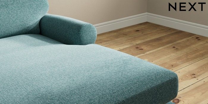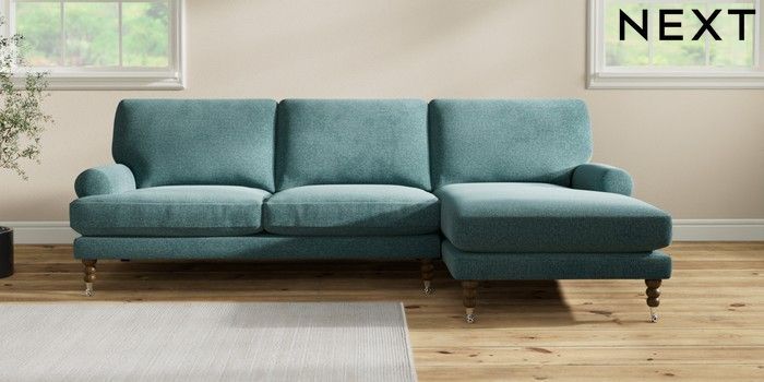 7.2.10 Erin Deep Relaxed Sit Medium Sofa Chaise - Right Hand Chunky Chenille Mid Teal Green High Classic Turned Chrome Castor - Mid | Made Click here to use our website with more accessibility support, for example screen readers