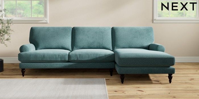 7.2.10 Erin Deep Relaxed Sit Medium Sofa Chaise - Right Hand Chunky Chenille Mid Teal Green High Classic Turned - Dark | Made Click here to use our website with more accessibility support, for example screen readers
